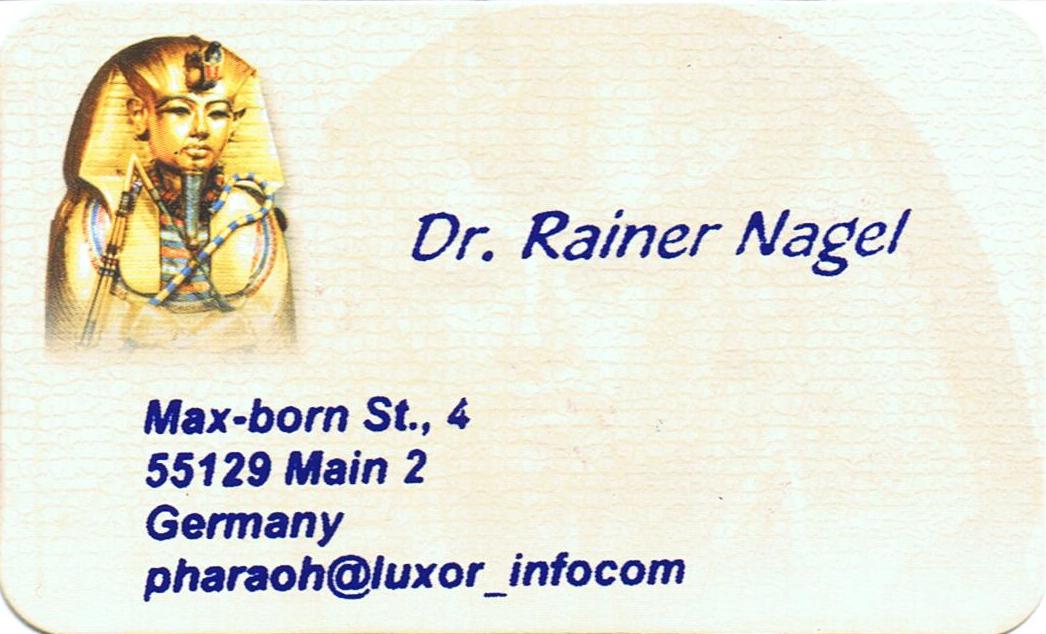 März 2009: Beim Bummel durch die Bahnhofsstraße fragen wir uns, was wohl aus Abdul geworden sein mag. Keine Spur von ihm. In der Wohnung finden wir Ausdrucke von diversen Homepages, die sich mit Luxor beschftigen, unter anderem auch von meinen Artikeln. „Jetzt sieht jeder, was Abdul für ein Bescheißer ist“, sagt Alexandra. Fein.